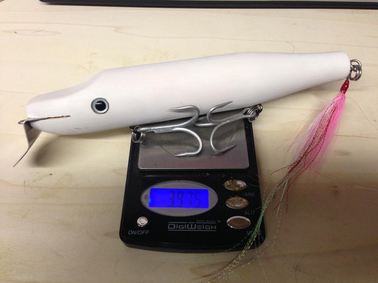 The second pic is my tester version in primer, will probably ditch the split rings on the final ones. 8.5" and 4oz