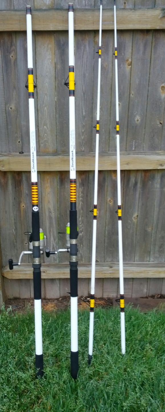Nice entry level rod/reel combos bought maybe 15yrs @WalMart, used maybe 6 times and no use in last 10-12 yrs. I am now a boat guy and don' like sand between my toes.