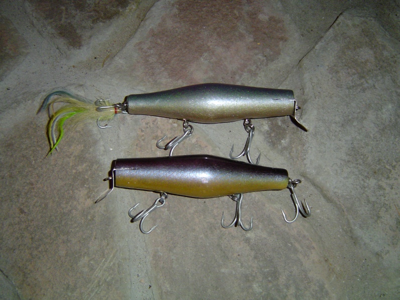 The danny's are a couple more of the most recent additions to my collection and are a little less abused. I had some the same size and shape in yellow for the spring and they are remarkable slow rolling movers and poppers to say the least. The wide belly on Johns danny's is part of what makes them so unique and functional.