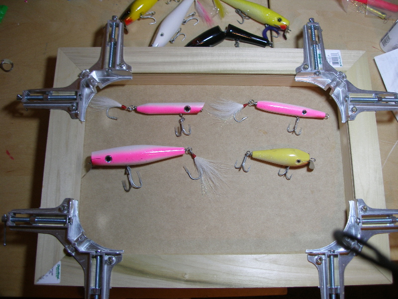 Actually Freak, I don't use that atypical wood that others use. I am using old growth redwood. Why Because Redwood is very bouyant and light. No the grain is not tight and no matter what you do it will show through. But what you look at in a purty lure is not what a fish will even worry about. Instead I get a plug that swims ten times better than an AYC plug. I can build them bigger and with less full body weight to keep them swimming and swerving better. Which means more action, which means more fish!