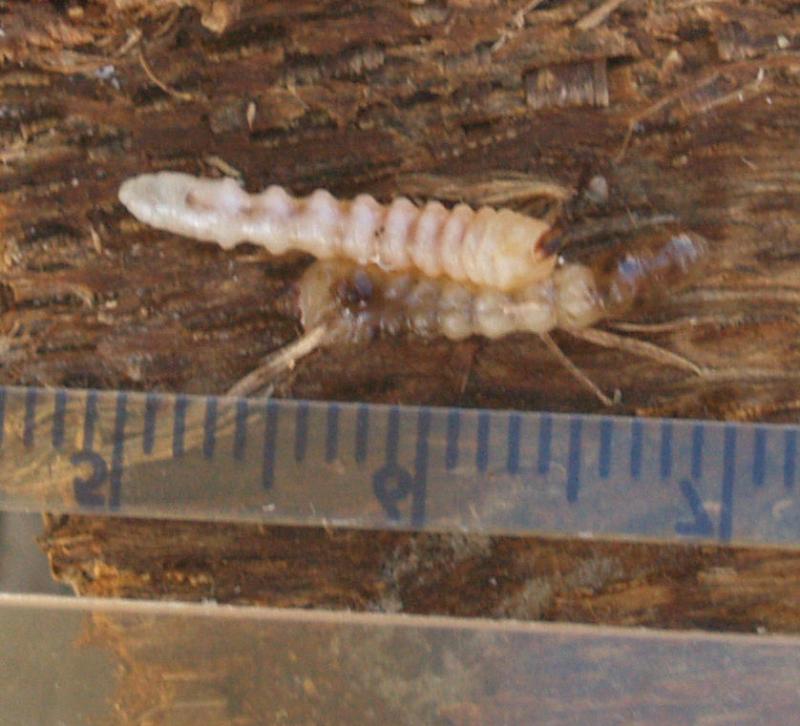 Infestation is in oak trees. Better pictures with scale, the larva are now dead so slightly stretched. Seem way too small to be ALB, max size is 15mm where ALB are 30-40mm (annotated pic). They do not burrow into the center but are restricted to the immediate layer right under the bark, where all the live parts of the tree reside.