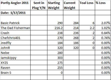Going to do weekly Monday night weigh-ins this year. Try to have them in by 10:00 PM. If late just try and update ASAP.