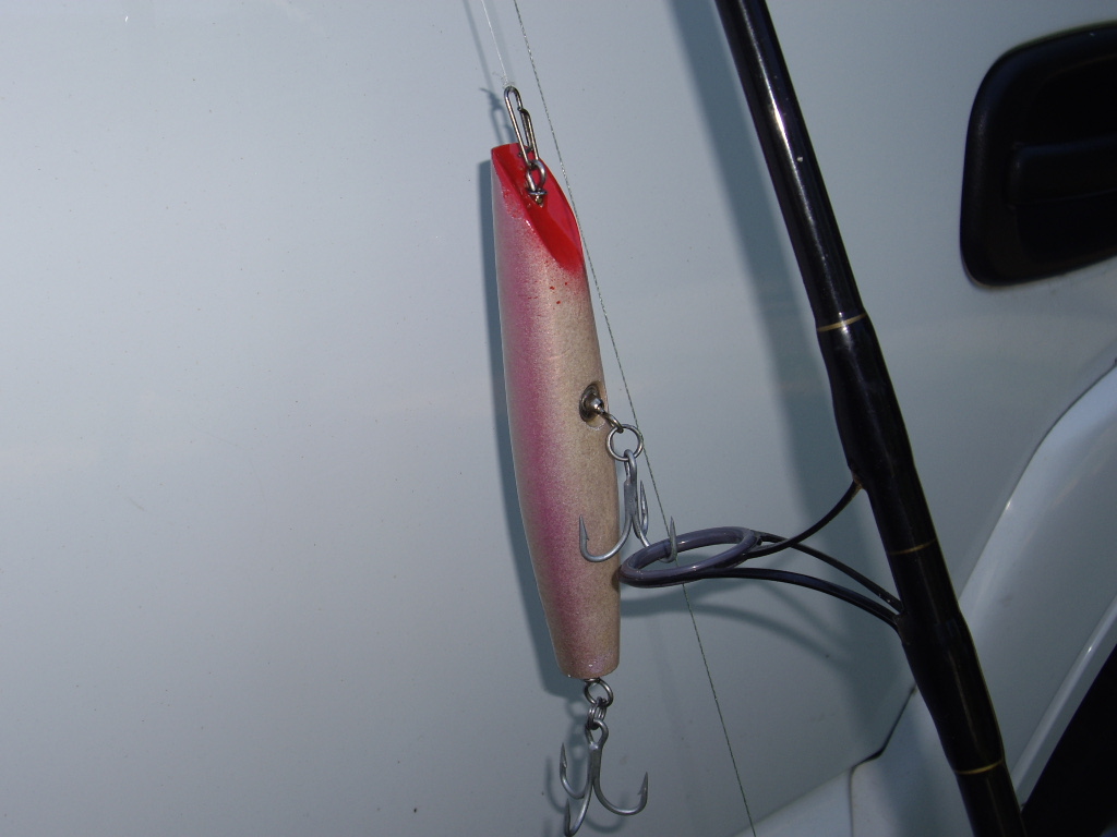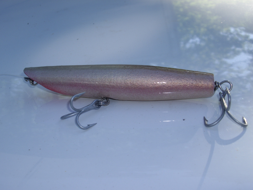 It's rigged with two cut 3/0 and a 5/0 dressed swash on tail. I love fishing darters. That fish was 42", 26# . Nothing great, but it couldn't resist the plug.