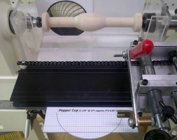Two more thoughts on creating a shallow popper cup: - Sanding: Cut a 4" ring through 1.5" thick hardwood with a hole saw, mount it in the lathe and use the Vega template to shape the curve on the outer face of the ring (this would be like taking the middle slice of a 4" x 5" oval). This still requires attachment of sandpaper, some kind of jig to hold the popper, etc. Winter.