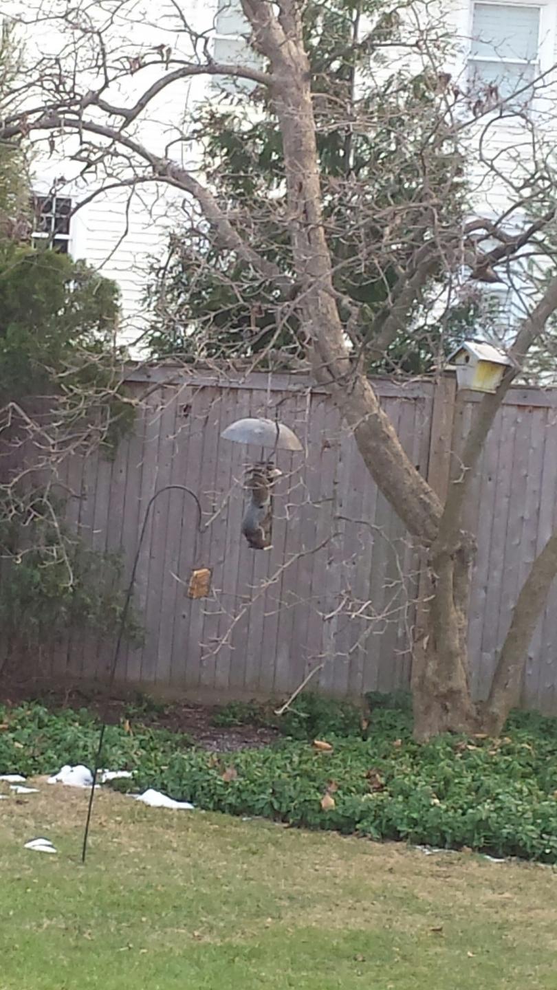 At guess at that point you're intentionally trying to lure the squirrels in!I'll stick with my new feeder,spending much less in seed and pellets.