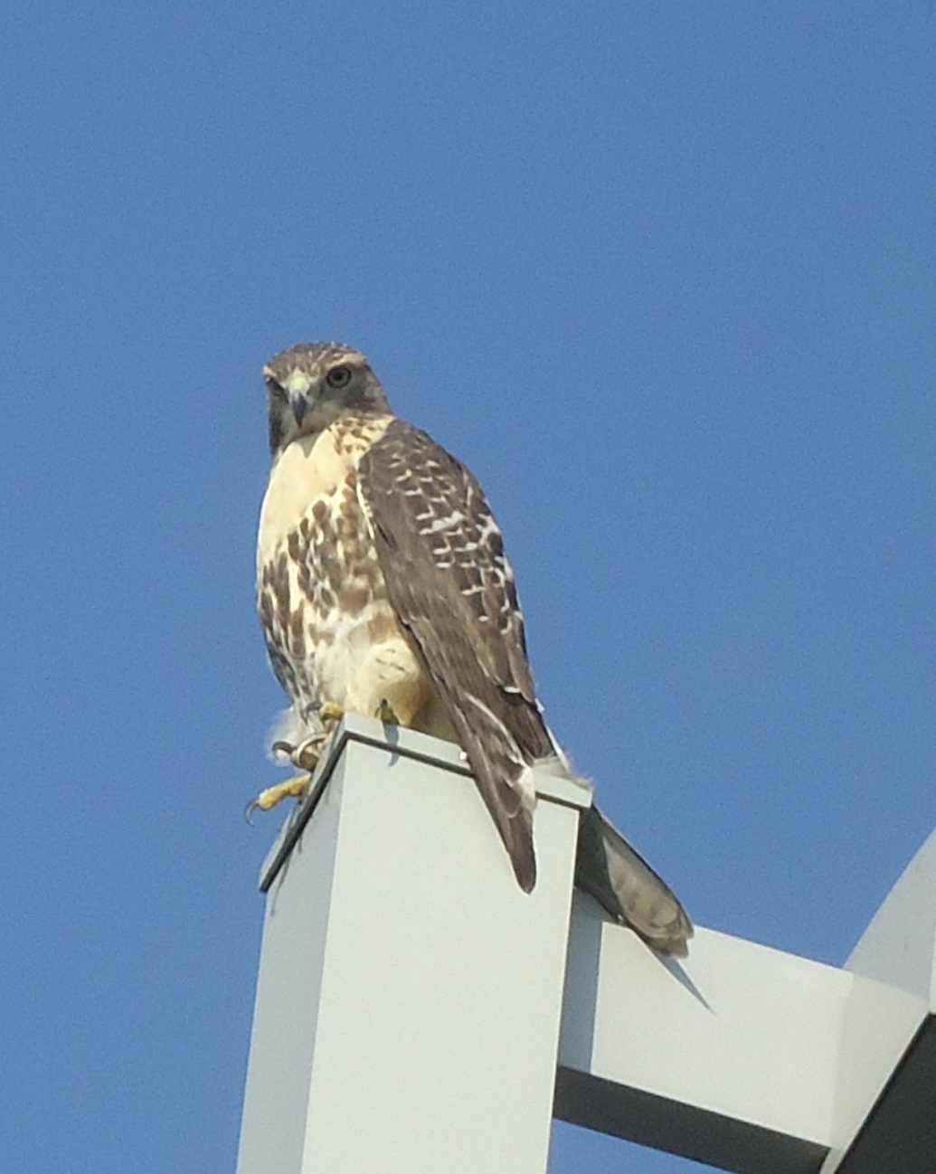 I came into work the other day and this hawk was sitting on our smokestack screeching.