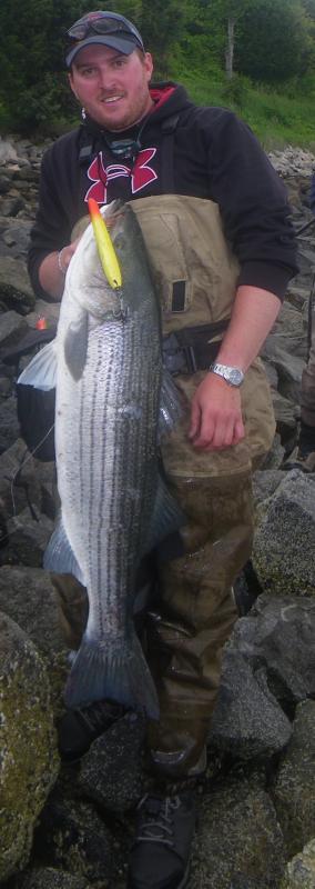 Nothing like the firm "yank" when a nice striper swallows a slow moving swimmer! Only 20 pounds but it was my thrill for today! Can't beat the "Prey"!