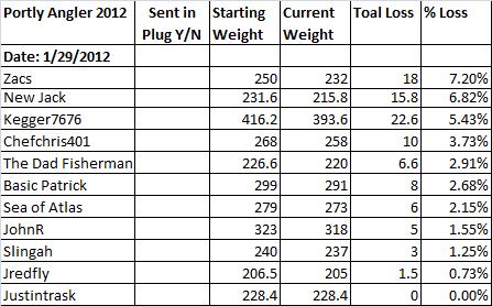 Wow! I think that is a new portly angler record for Zacs - 12 pounds in one week. That's awesome. Congratulations - keep it up.