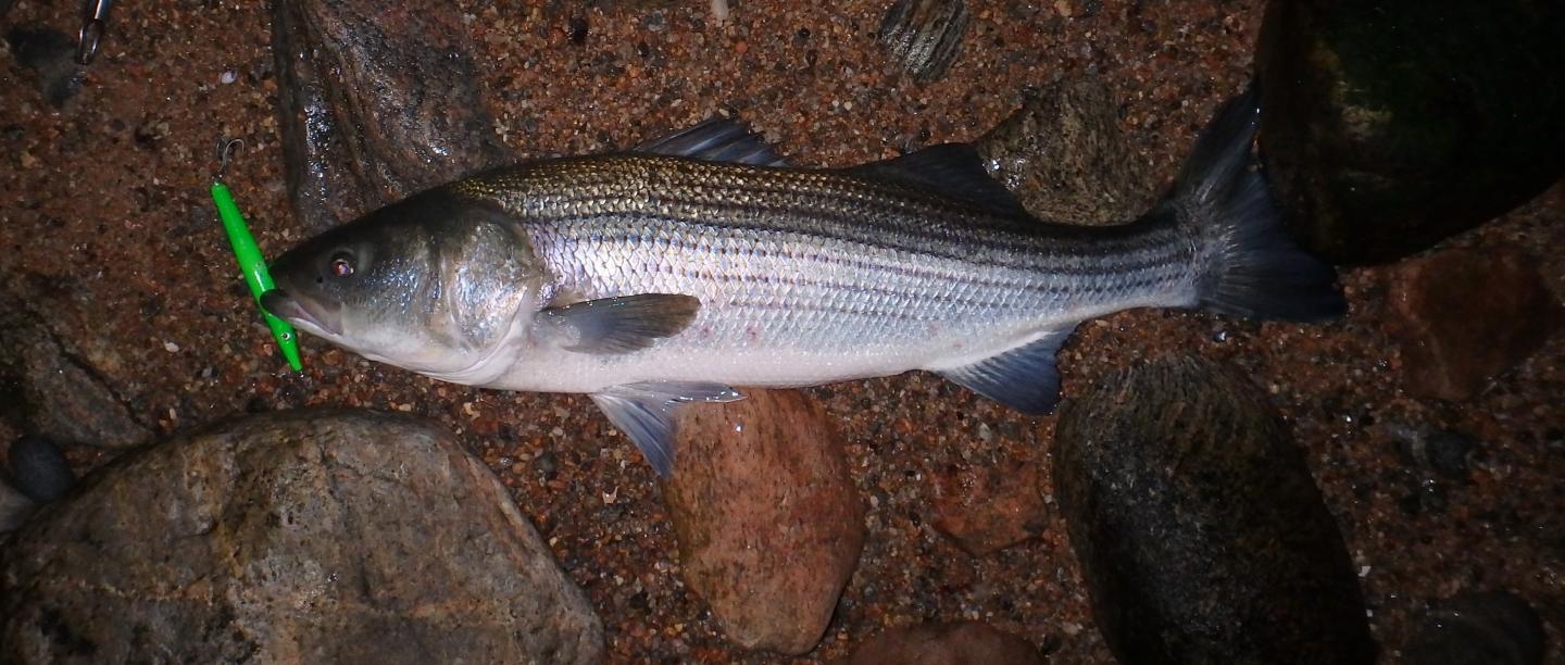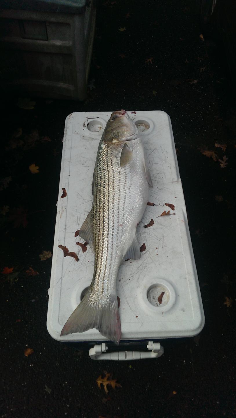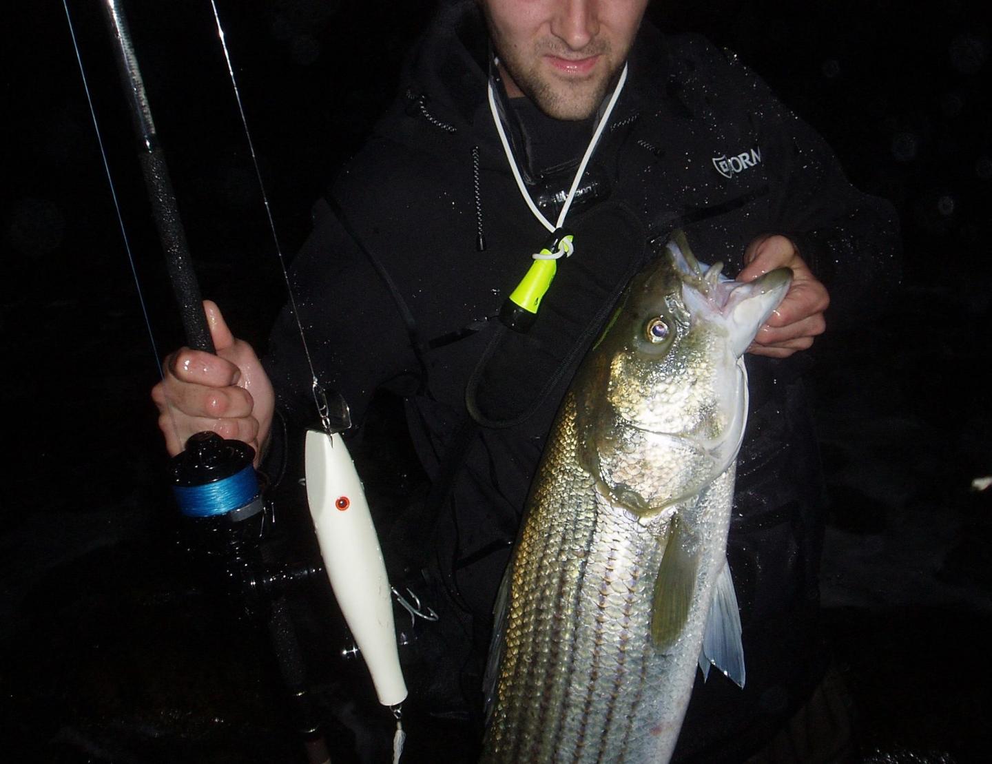 Here is a 46.5 inch 26.5 girth striper caught on one of my dad's Stubby Needlefish (in black he built from Dave Anderson's Fisherman Magazine article years ago). First cast on it after 15 on a white magic swimmer (all shorts). I will never again say a full moon is too bright. Visited my dad at Bourne National Cemetery this week. Thought it only fitting to use one of his lures. Nice that he and I are in the same neighborhood. After the photo op she swam away fresh.