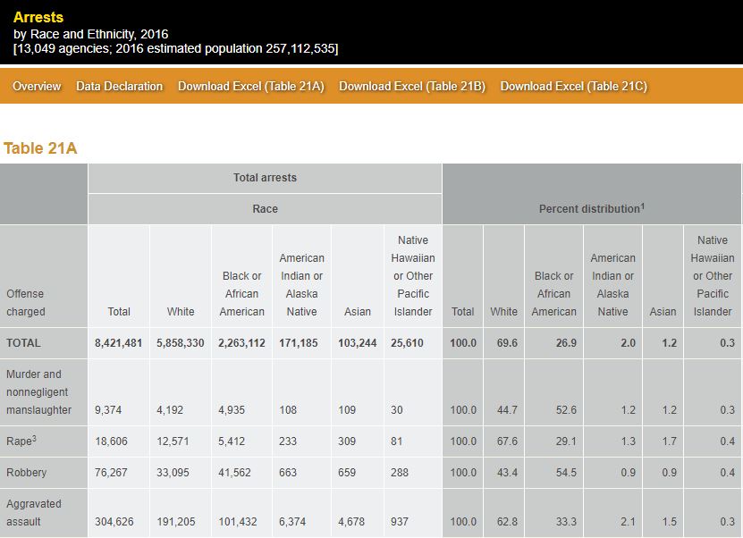 Including a whopping 52.6% of all murder arrests in 2016 and 53.1% of all murder arrests in 2017.