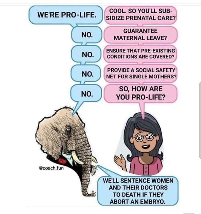 As always, your side will only talk about the impact to the mom. and that’s an important part of this, but it’s not all of it. the impact to the baby is also part of this, and your side hates admitting that or considering it for a second.