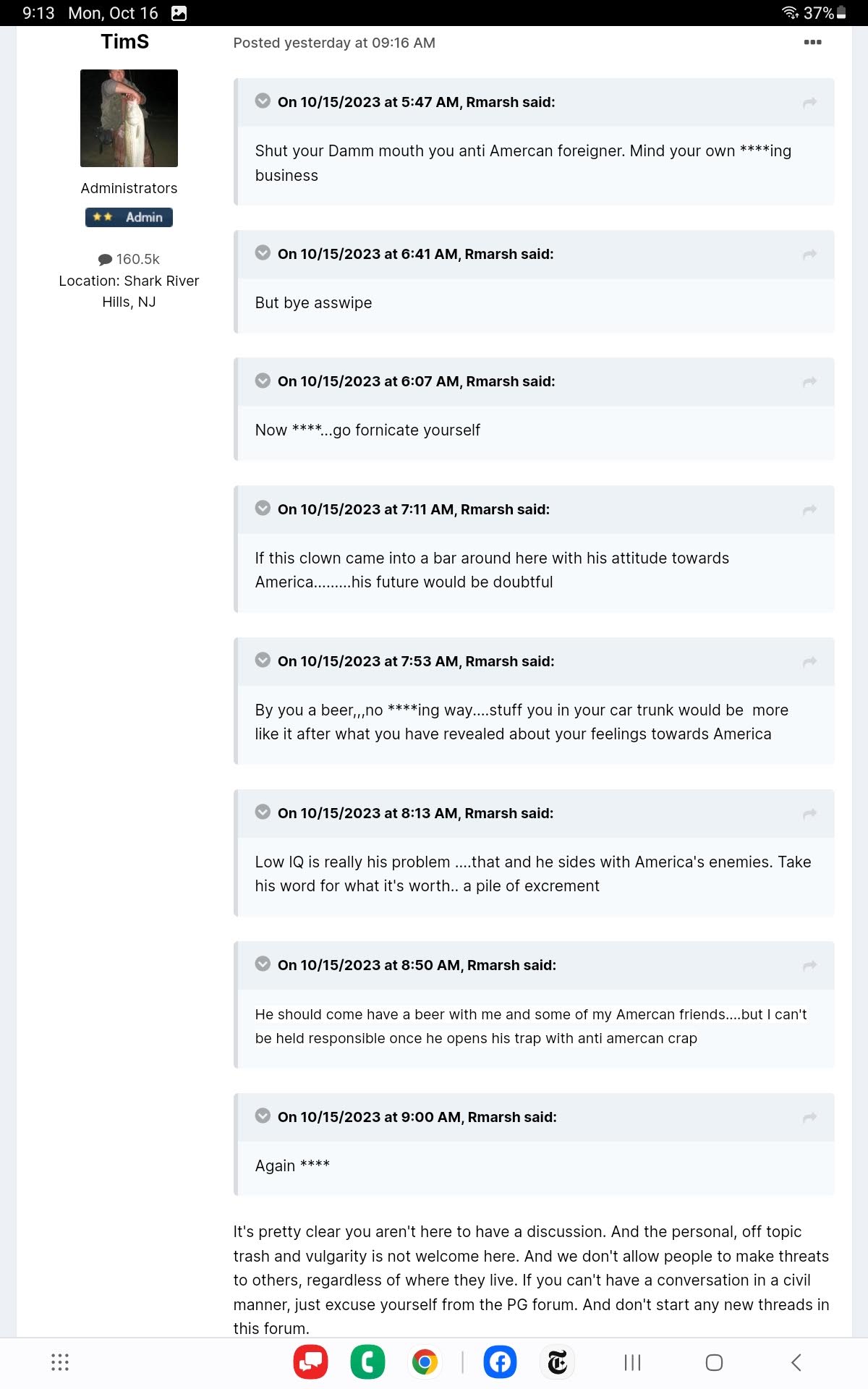 Marsh is an angry bitter troll, his crap just rolls off my back, he is under the misguided impression he has successfully baited us. His problem is he doesn’t understand there is a rational political conversation going on, which he is really incapable of contributing anything constructive to shy of insults and Trump party line BS. He really is a sad pathetic individual, i can’t even imagine how he relates to others outside of this forum (or that SOL) who aren’y cult members.