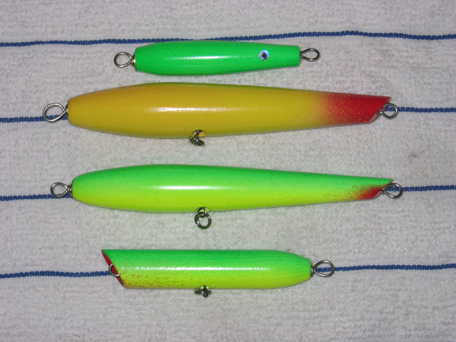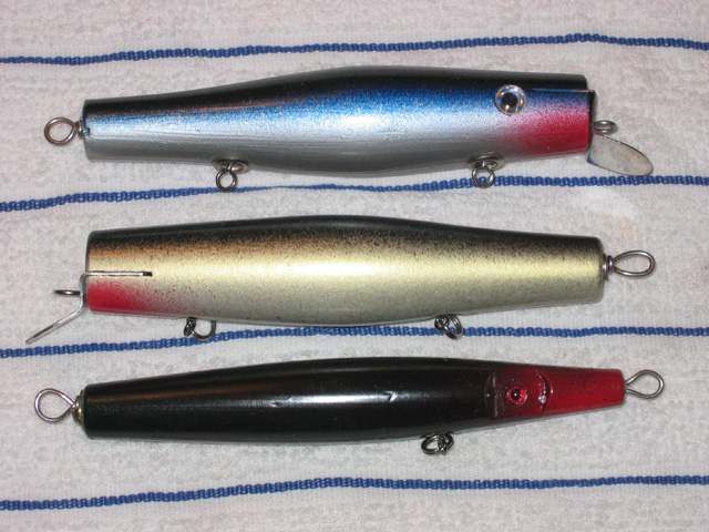 Mike great looking plugs love the spook .. I got Capesams one like that exactly almost .. Slip great plugs ,, I know they catch .. I seen you down there .. I'm making the Predators out of white pine .. love the stuff .. smells like christmas ,,, darters are hardmaple .. handcarves basswood and rock maple .. I have a love/hate thing going with ayc ..Great for plugs ,,bad for me .. been back in forth with it enough to know its the wood giving me headaches that I never usaully get .. I don't wear a respirator either .. just full face sheild to preserve my good looks ... I need more wood ... Off to Downes and Reader to give them all my cash and pray the tally man don't rob me too bad .