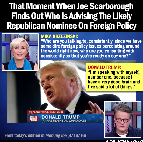 hey...we were told the Teleprompter Twit with no practical experience would "grow" into the job....that never happened but can't we imagine Trump could grow into the job even if Obama couldn't...maybe get some top advisers like Al Sharpton and whoever is in charge of America's Union Thugs at the time, whoever has been advising Obama on foreign policy sucks, so Trump can only do better I suppose.....maybe they'll put him on teleprompter after he wins the nomination so he'll stay on message like they did Barry and wifey...