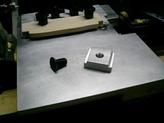 I fabricated some T nuts using aluminum and some large flat head screws to be flush with the plate. They go under the lathe bed just like the T nuts for the tailstock and other lathe bolt on stuff. You can probably use any material that can be tapped so you can bolt the plate down. To bad you don't know anybody in the machine trade  . Hopefully others will chime in on how they got around this problem . Paul