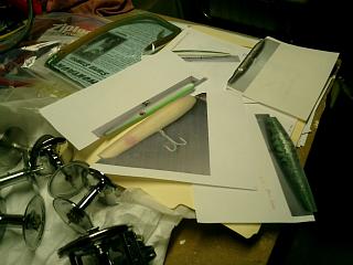 I make my templates just about the same way, except i cut the paper very rough, then spray adhesive and stick the paper to the template, then i cut it out on the bandsaw.....makes it a bit easier to tell which one is which once you get a bunch of them.