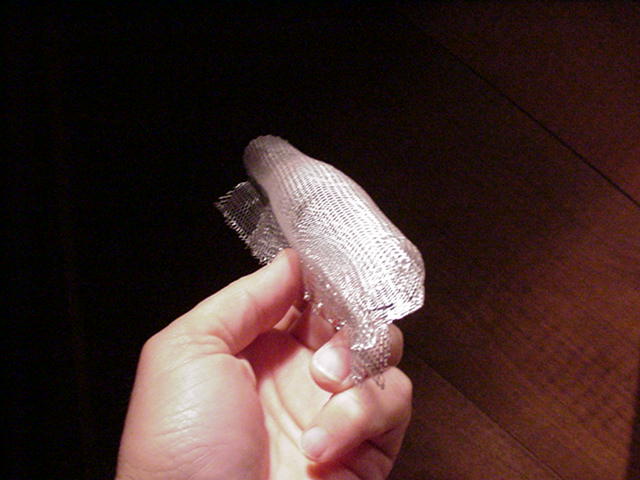 Found this stuff at AC Moore's ( Michael's has it too) Moldable wire mesh ( can be had in copper or aluminum) You can mold it to shape of plug and keep it that way for time after time's use. 3 different sizes of scale opening, this is 1/8" pattern) They have 1/4, 1/8, 1/16. It's for clay modeling. Around 5 bucks a package you get two sheets from which you can cut 8 seperate patterns. Saw it last year and kept thinking it might work. You could have 8 different patterns ready for use with little effort like tightening bridal veil etc. Thought you guys might be interested.