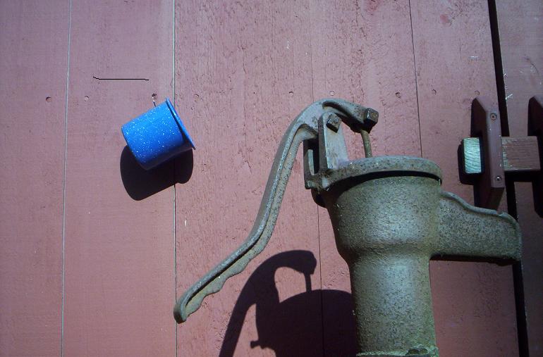 Remember the Blue porcelin cup hanging on the barn next to the hand pump.  Nothin ever tasted colder and better than the cold water that came out of that pump after walking behind a hay bailer pitchin #60 bales onto the wagon in the heat all afternoon.