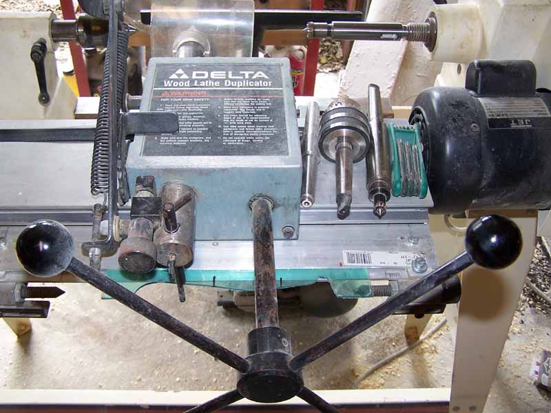 Sorry I can't ship this either as it is really heavy. (probably weighs 400#s) ould explain the picture below to any potential buyer. The duplicator is set up on the bac side of the lathe so you can work off of the front without removing the duplicator. I will also show the buyer how to set it up .