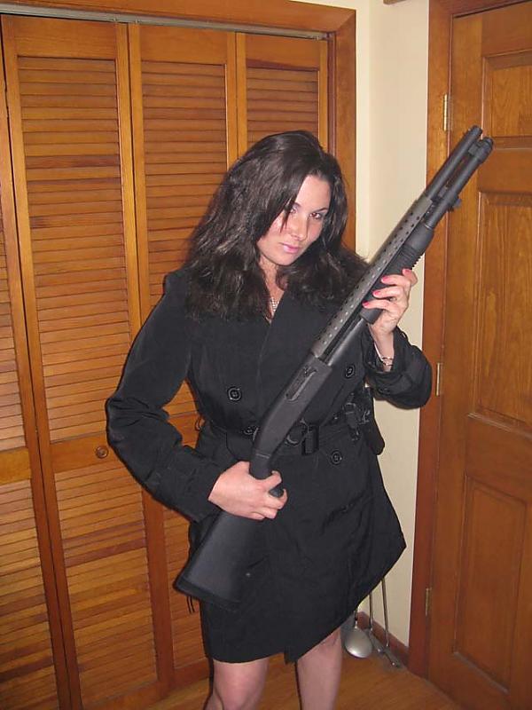 Ok, she's like really hot but can you at least teach her how to hold a weapon