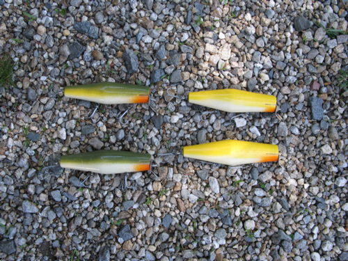 This is a scaled down version of a 6" danny that I really like. About 1.25 ounces. At this weight and size, I've discovered that they become very sensitive to little things, like lip size, diameter of the thru wire, even how much wire is used in the line tie loop at the head of the plug. These guys swim a bit nose down compared to the 6" version, consequently a bit more tail slap. Can still be tuned to swim in moderate current. Doesn't take much at all to make them wiggle.