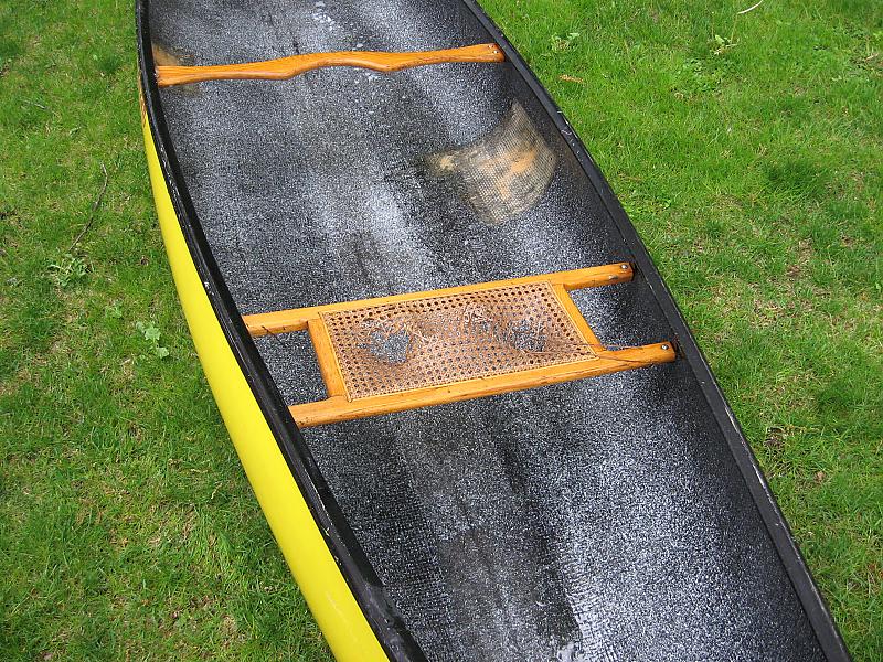 Selling this for my aunt. Its in nice shape for its age. The two seats need to be repaired but I have heard this is really easy to do. I just would have no idea how to fix that. There are some small spider cracks, two small patch jobs done from the inside (really nicely done though) and it does have on small dent from storage up in the front as can be seen in the picture. This canoe is very light (fiberglass) and is in perfect working order (other than the seats that need to be re-strung). I just cleaned it for them and was really shocked how nice it came out when all the pollen came off. It is located in Shrewsbury, MA. If you would like to go look at it, PM me and I will give their number.