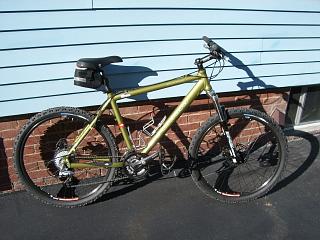 This is a North Face Pumori mountain bike. The frame size is 19.5", it has 27 speeds, Shimano LX/Deore components, Hayes disc brakes, and a Marzocchi MZ Comp front shock. It comes with a seat bag, bottle cages, toe clips, and an unused Bell adult medium sized helmet. I bought it a few years ago for my wife and she only rode it a couple times, it is in excellent condition. Asking $350, pick up in Peabody MA.