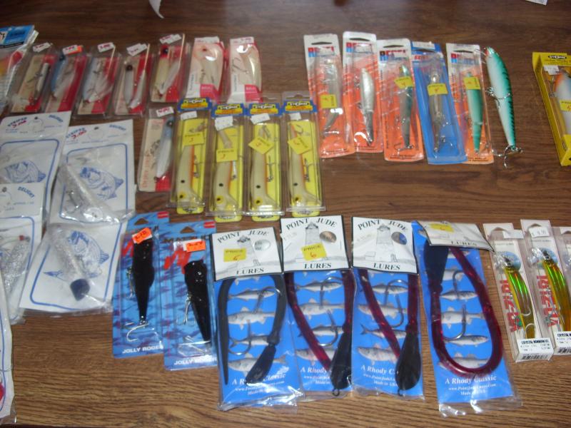 Loads of squid jigs, sluggos, spro jigs, etc…