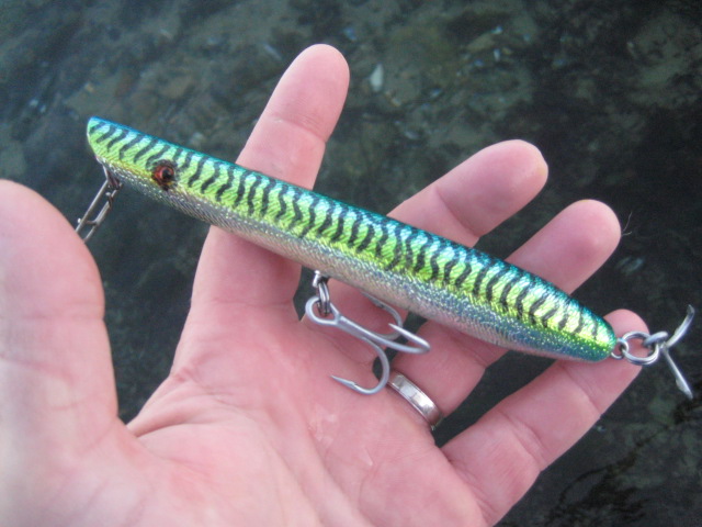 Re-think that. Pencils are very effective lures when worked slowly and allowed to slap and glide, with an occassional pause, then some fast thrashing, a pause, twitch, and restart a slow gliding retrieve. In the canal you can't appreciate this very well, particularly as the current gets moving. Your pencils look to be modeled on the Gibbs, which are excellent lures. I'm sure they will fish well, I'm only curious because I've never fished one of the big three hook Gibbs ones and this year I have a friend who has taken/lost some appreciable fish using a long (9") skinny spook so I'm thinking about bigger plugs for this winter. I like your stuff very much.