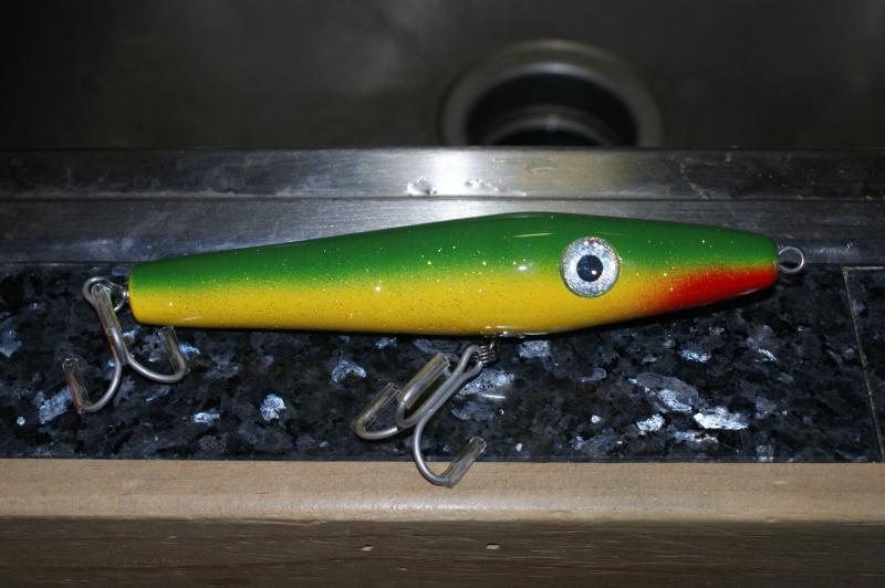 I have for sale a brand new never fished Afterhours slider Green back Yellow I believe it to be 2 3/4 oz