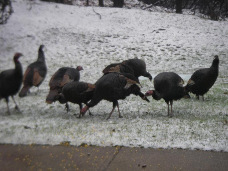 14 turkeys and 2 dear today, missed getting shots of the deer. Turkeys were loving the corn I threw at them.