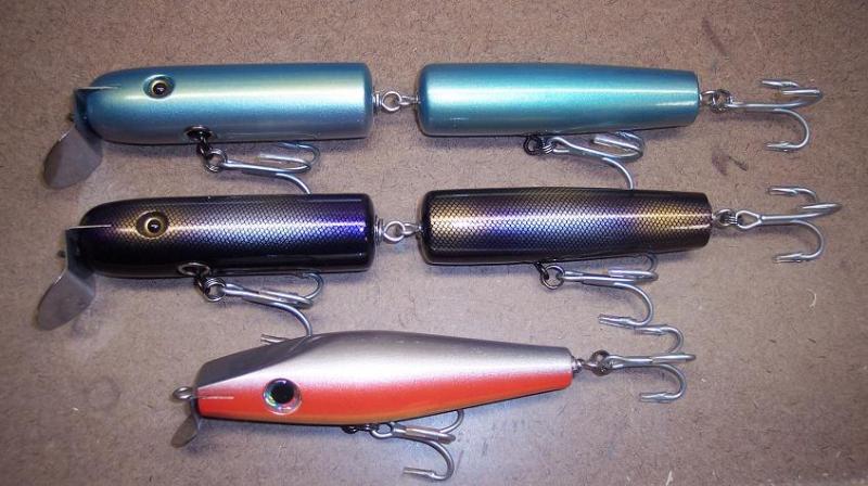 Got a couple I found in the vault.  2 jointed eels, 1 in Black Scale and 1 in Bluefish. $30.00 each shipped! "Flathead Minnows" 1 each in Bluefish, Silver/Scarlet (Blind) and Yellow/White and Silverback Rainbow. $24.00 each shipped!