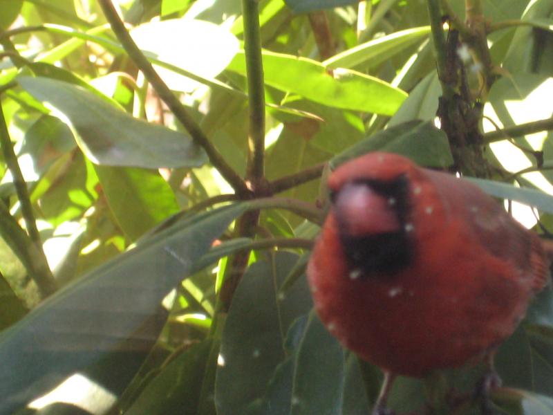 One of the more interesting aspects of backyard birdwatching is if you have trees nearby that birds are nesting in, you will eventually see what the young birds look like. For example, young cardinals are colored like the female. Another is when sparrows leave the nest, they don't leave the area. They will continually try to get the parents to feed them like they did when in the nest. (If you see a sparrow hunched down with its wings fluttering by its side with its mouth wide open, that a "fledgling" that is trying to sponge a free meal from mom and dad.