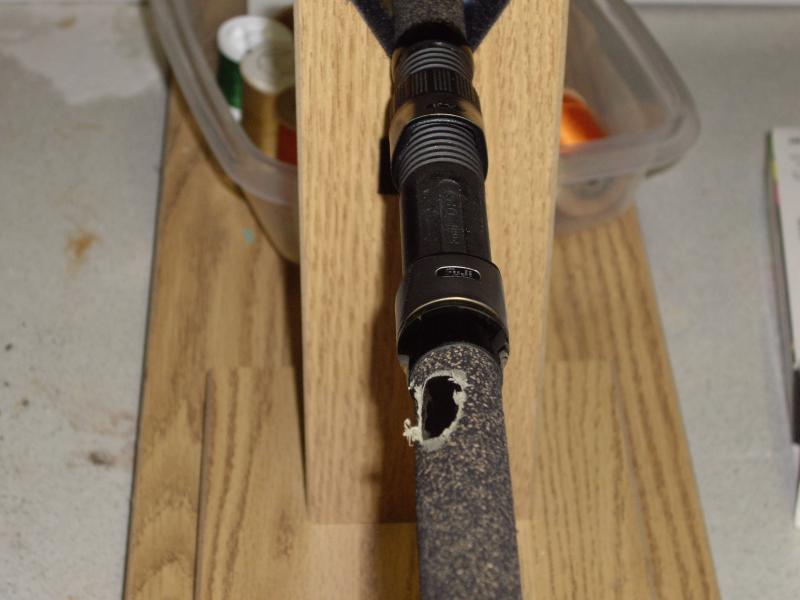 Pulled the Rainshadow 1088 out of truck last night after a night of pilot error and equipment failures.... Lost the ring out of tip top guide trying unsuccessfully to free a Salty's blurple needle with glow eyes from the rocks in a big surf.... So while it is on the rod lathe, I need to do something about the void I've worn though the cork tape when casting. Any suggestions? This will be just to get it through the Derby. I will attempt to replace the whole grip above the reel seat this winter.