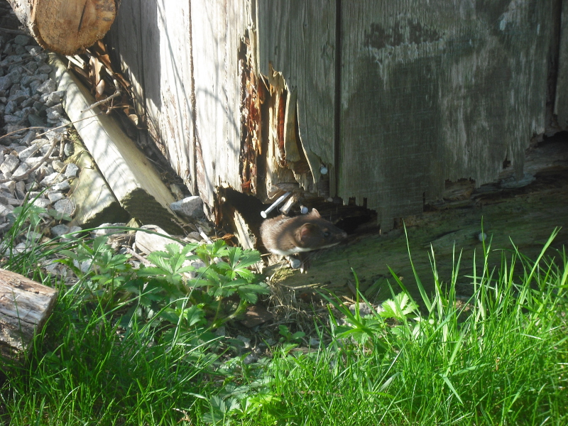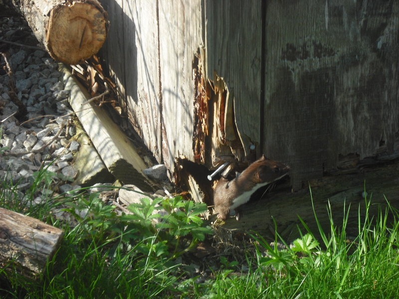 we found her in the shed this morning. she has some babies. mink? some sort of ferret. she is brown w/ a white belly and is about 10 inches long