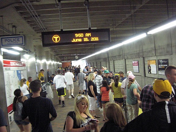 Traffic was heavy going in. Backed up for over a mile at the Burgin Parkway exit off Rte. 3. All cars waiting to go into the Quincy Adams T garage. We finally got through it and parked at my wife's office. The T was a cattle car going in.