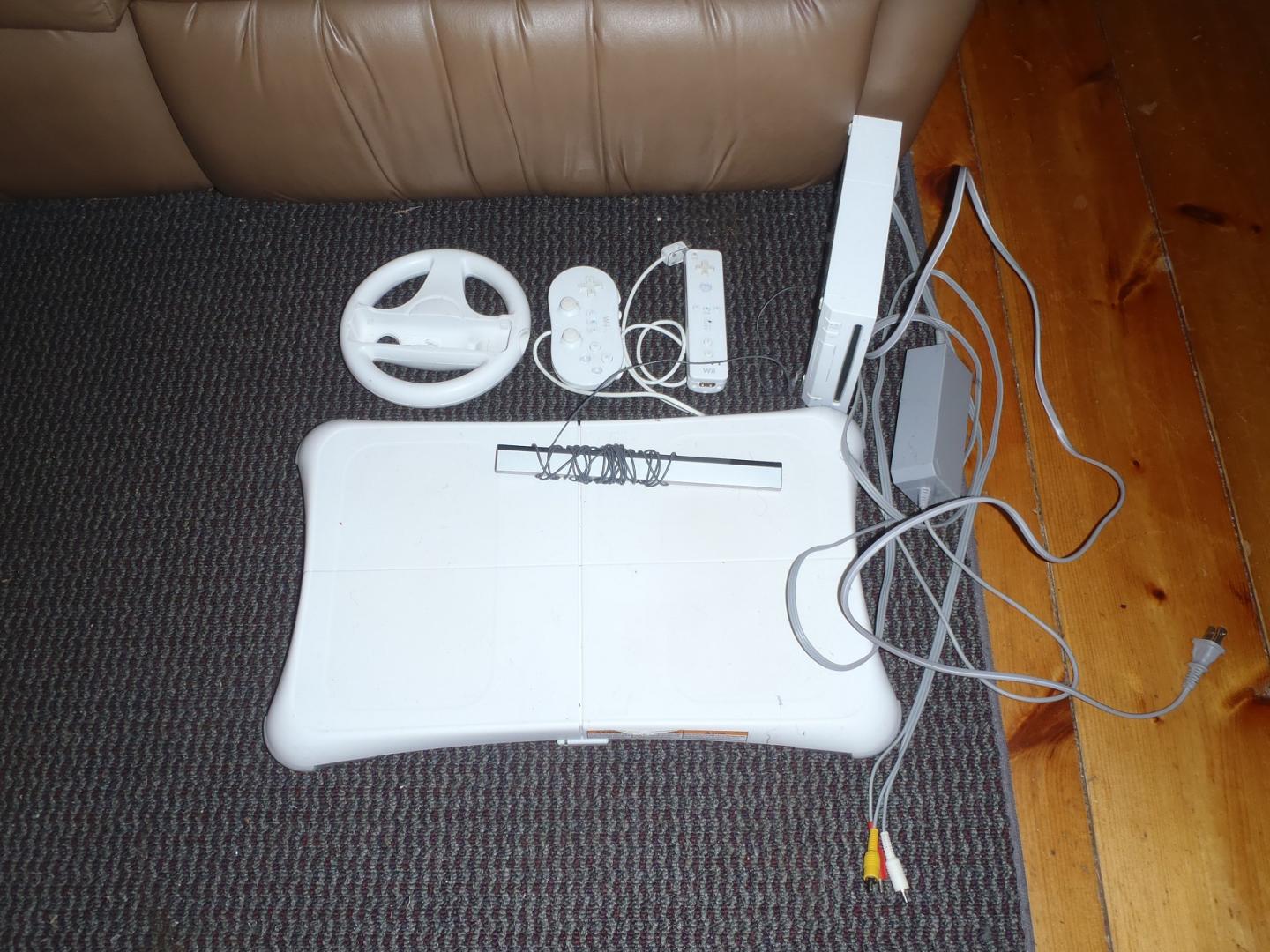 And a few games........Wii sports,Wii fit,Sega Bass fishing,Game Party, Rapala Tourney Fishing.............only have the controllers pictured...........100$