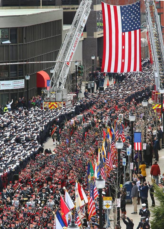 Today myself and about 60 other members of my department went to Boston to pay our final respects to Firefighter Micheal Kennedy. What an amazing job the Boston fire Dept did putting together a perfect tribute to a well respected firefighter. After the ceremony they extended the day over at Florian Hall (Local 718 union hall). When we arrived at the hall the Drop Kick Murphy's were all set up and ready to play. It was a cool tribute to Micheal.