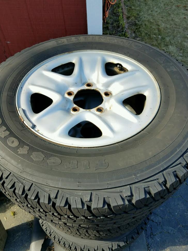 I'm posting these for a friend, 08 Tundra wheels and tires good amount of tread left.