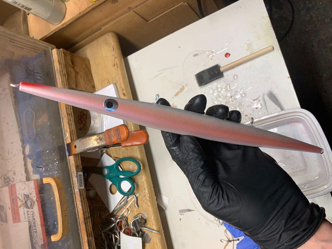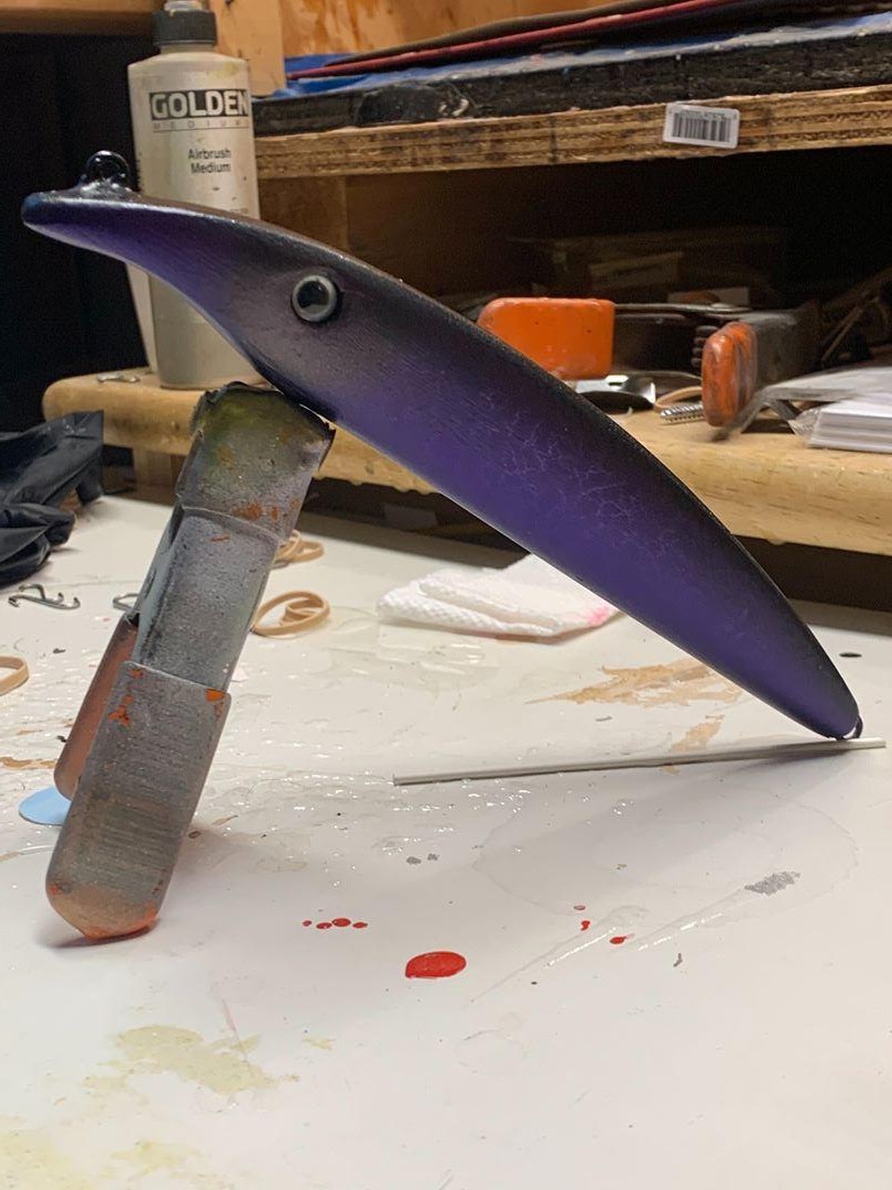 Two other methods I've tried are derivatives of ink. One is to mix a concentrated ink dye into the plastic. The plastic cures opaque white so using more dye is needed to achieve the desired color. I tend to use this if I am making a plug that is dark in color so that the hook rash isn't as pronounced. The second method is supplementing the aluminum dust by using a copic airbrush. It uses ink markers in an airbrush like holders to spray a mist of ink onto the plugs. It dries a bit tacky so I've put it aside as I don't wish to epoxy the plugs.